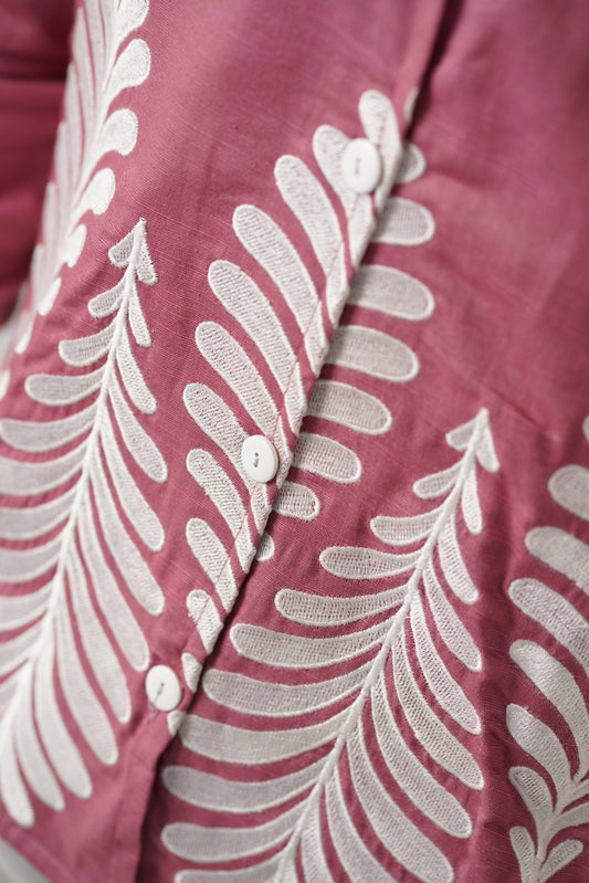 Embroidered Full Sleeves Rose Pink Unisex Shirt – Koti Apparels