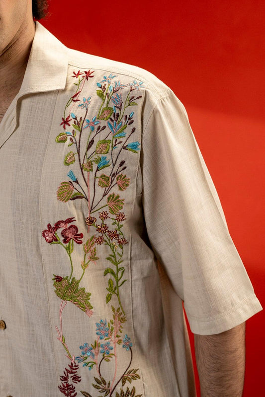 Embroidered Down Shoulder Shirt - Unisex