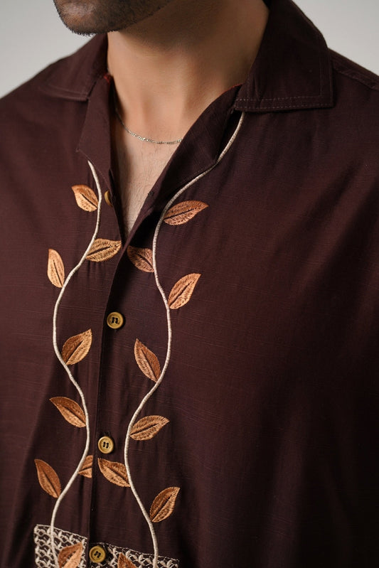 Embroidered Brown Full Sleeves Unisex Shirt – Koti Apparels